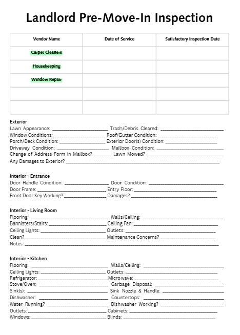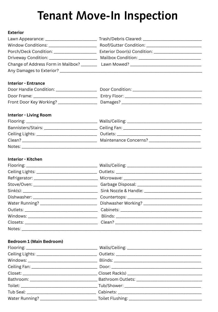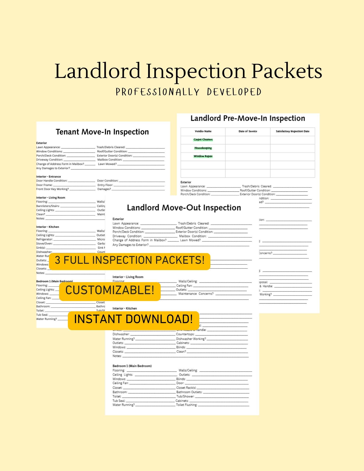 Inspection Checklists for Landlords- 3 Total Packets! Landlord Move In & Move Out Inspection Checklist, Tenant Move In Checklist.