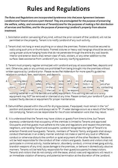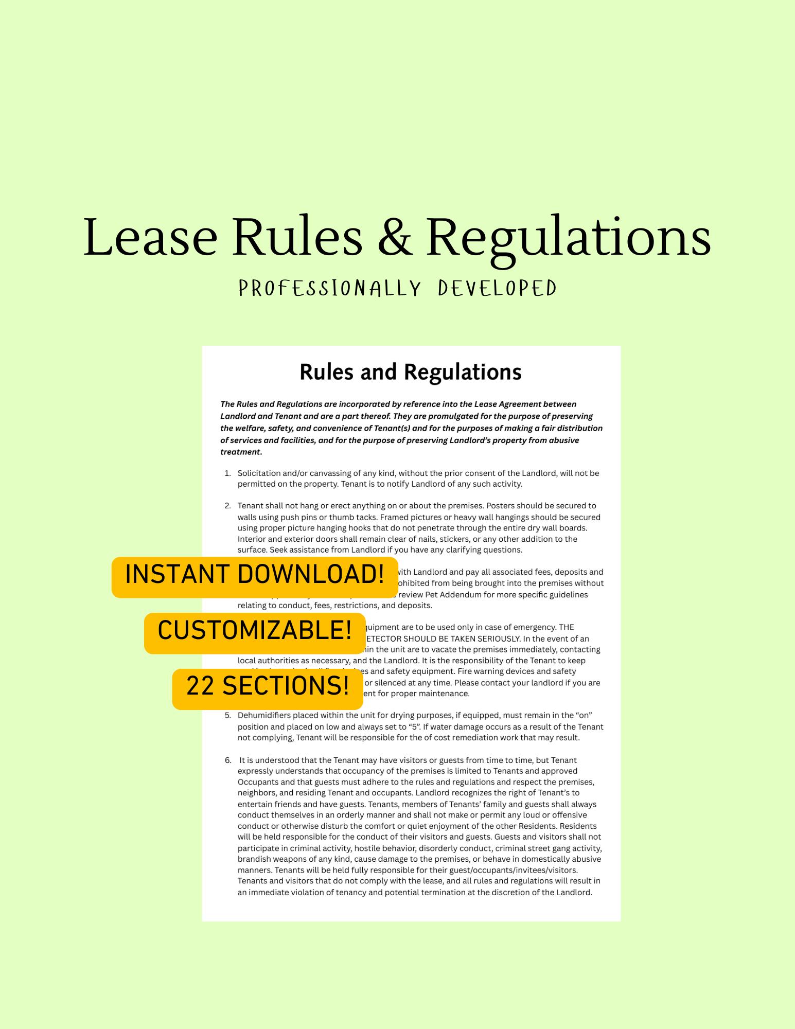 Lease Rules and Regulations with 22 Sections for Rental Properties! Customizable Template!